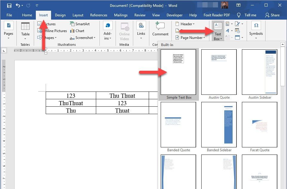 - Nhấn chọn Text Box. Chọn vào 1 kiểu bất kỳ. Chẳng hạn như Simple Text Box;