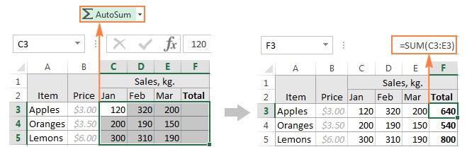 Bước 4. Chọn các ô mà bạn muốn tính tổng và nhấn AutoSum dưới tab Home.