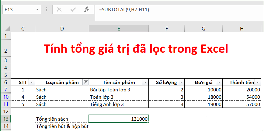 5 cách để tính tổng trong Excel