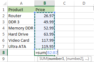 Chú ý: Bạn có thể nhập địa chỉ thủ công như = sum (B1: B2000). Nó rất hữu ích nếu bạn có phạm vi lớn để tính toán.