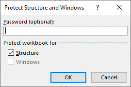 - Structure: đánh dấu chọn để không cho phép thực hiện các thao tác với trang trín. Như: chèn trang tính mới, xóa, đổi tên, di chuyển, sao chép…