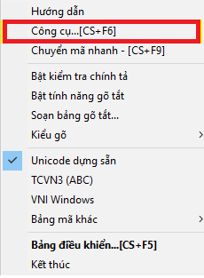 (mục đích: để nội dung của văn bản được lưu trên Clipboard) Bước 2: Chuột phải vào biểu tượng Unikey trên thanh công cụ và chọn Công cụ (CS+ F6)