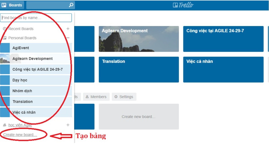 Tạo lập bảng trong Trello