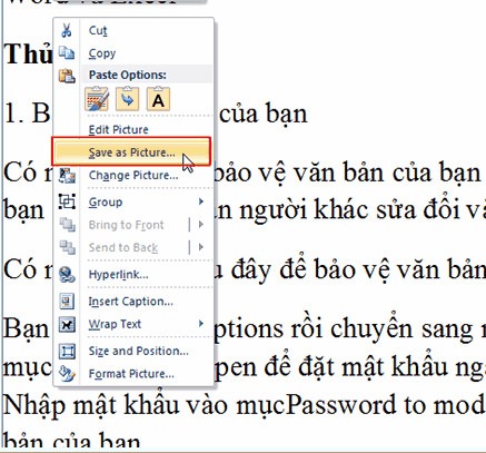 Save as Picture… để lưu lại file ảnh mà bạn vừa tạo ra từ file word bên trên.