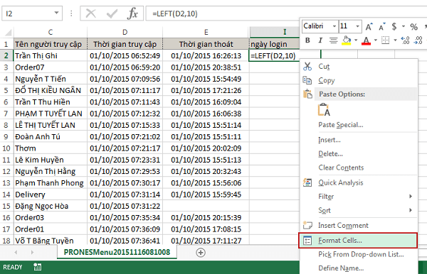 Như trong hình minh họa ở trên. Bạn dùng hàm left để lấy ra ngày truy cập nhưng công thức không chạy được, để công thức chạy được ta định dạng nó về General bằng các bước sau: