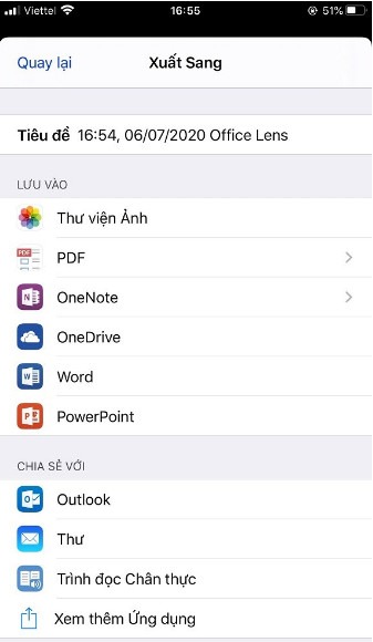 Ưu điểm tiện ích này của ứng dụng Microsoft Office Lens đó chính là sau khi chỉnh sửa ảnh và tài liệu xong ứng dụng sẽ cho người dùng nhiều lựa chọn. Có thể lưu vào bộ nhớ máy điện thoại hoặc máy tính, gửi trực tiếp cho người khác. Hoặc thậm chí là lưu trữ trực tuyến trên OneDrive