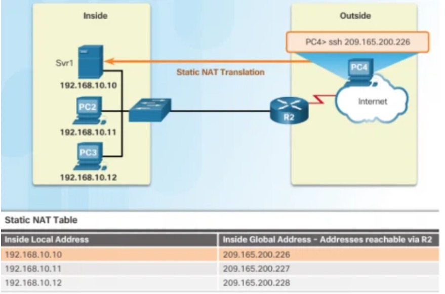 Router(config) # ip nat inside source static [inside local] [inside global]